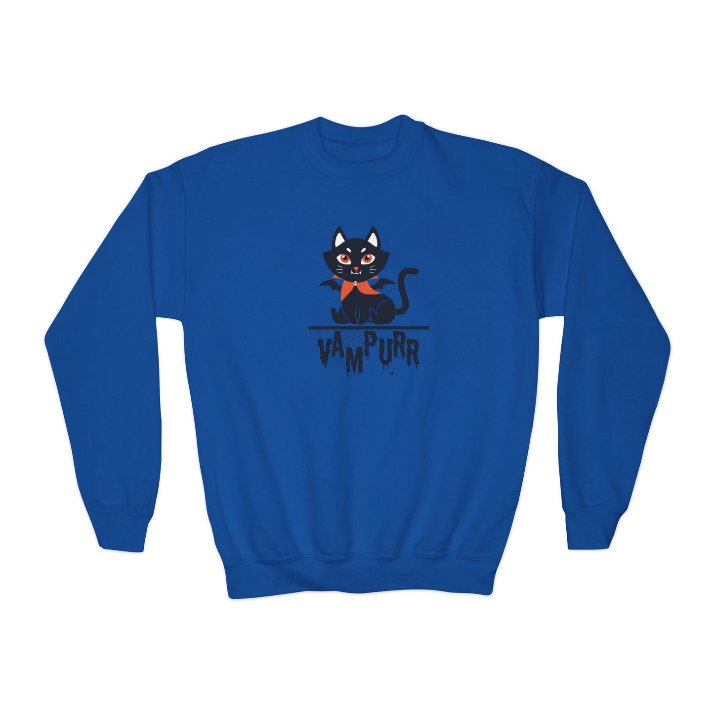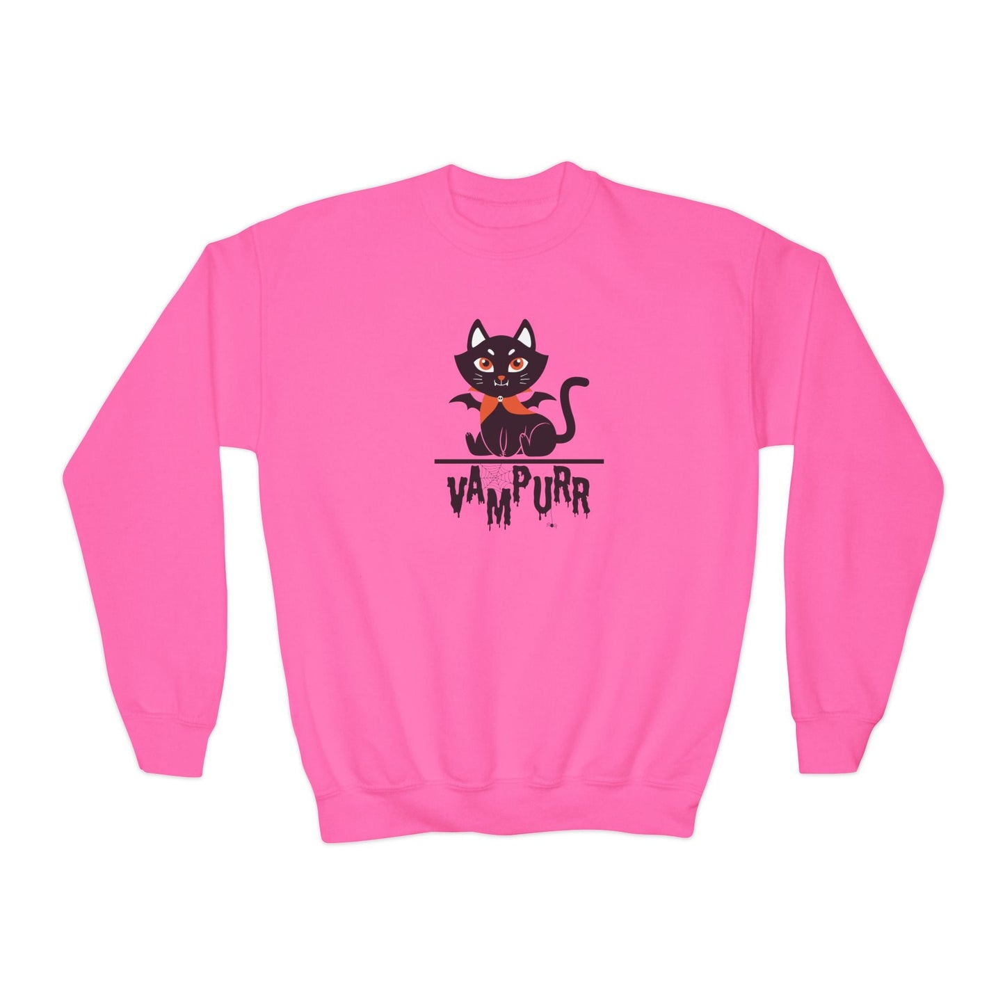 Vampurr Vampire Cat Youth Crewneck Halloween Sweatshirt