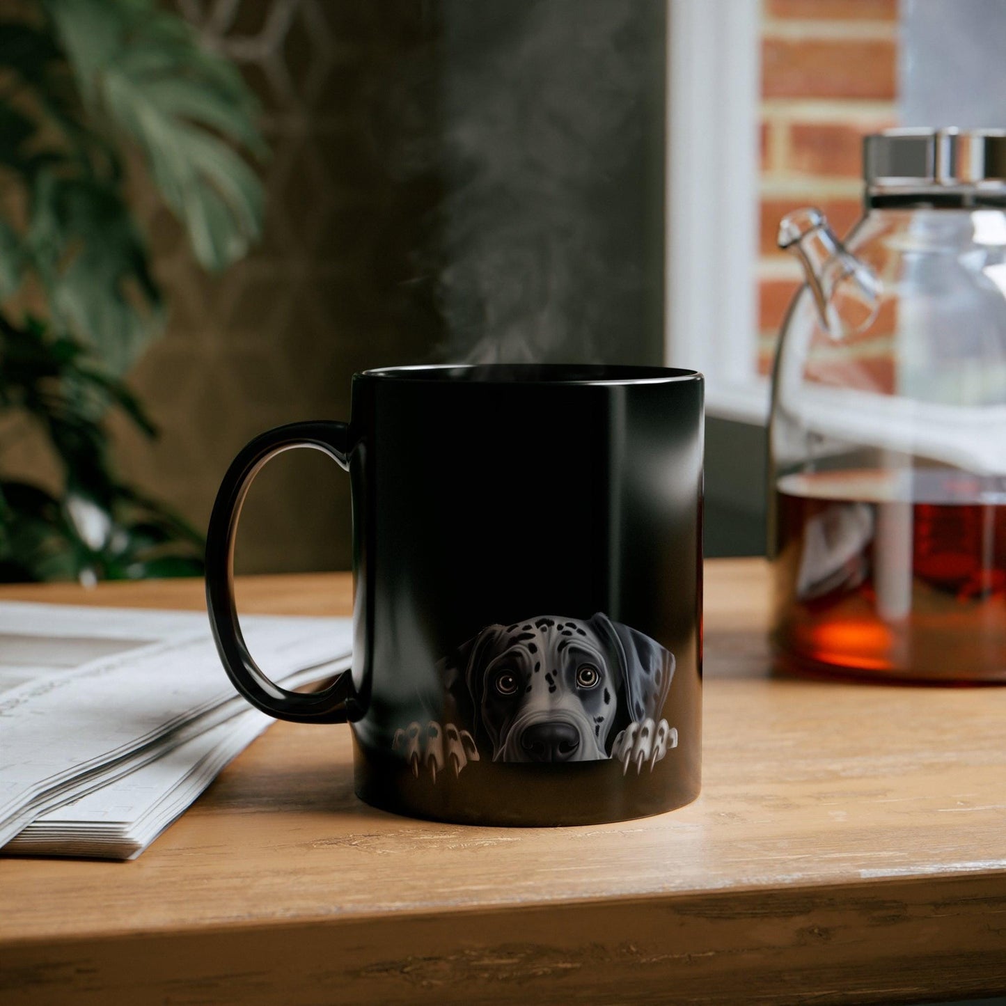 Printify Mugs Peeking Great Dane Puppy Black Ceramic Dog Mug 11 oz