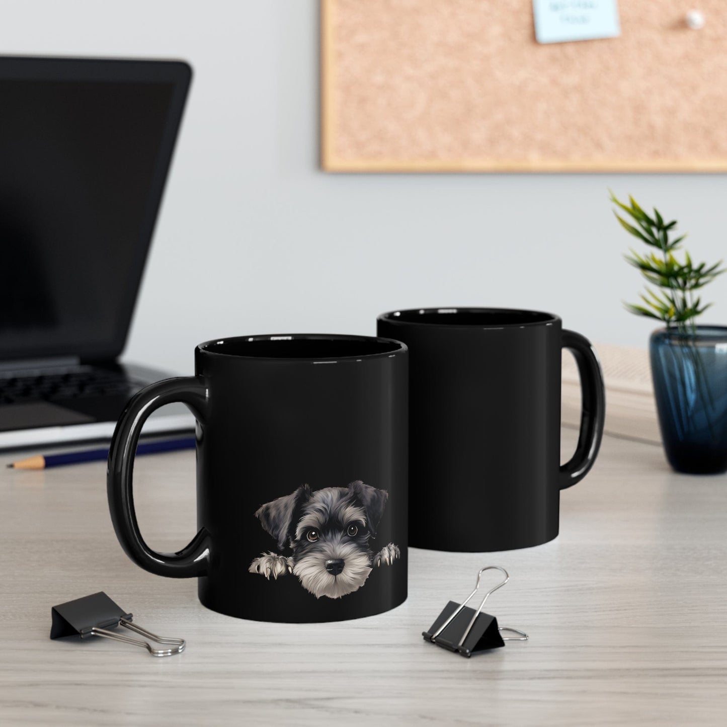 Printify Mugs Peeking Miniature Schnauzer Puppy Black Ceramic Dog Mug 11 oz