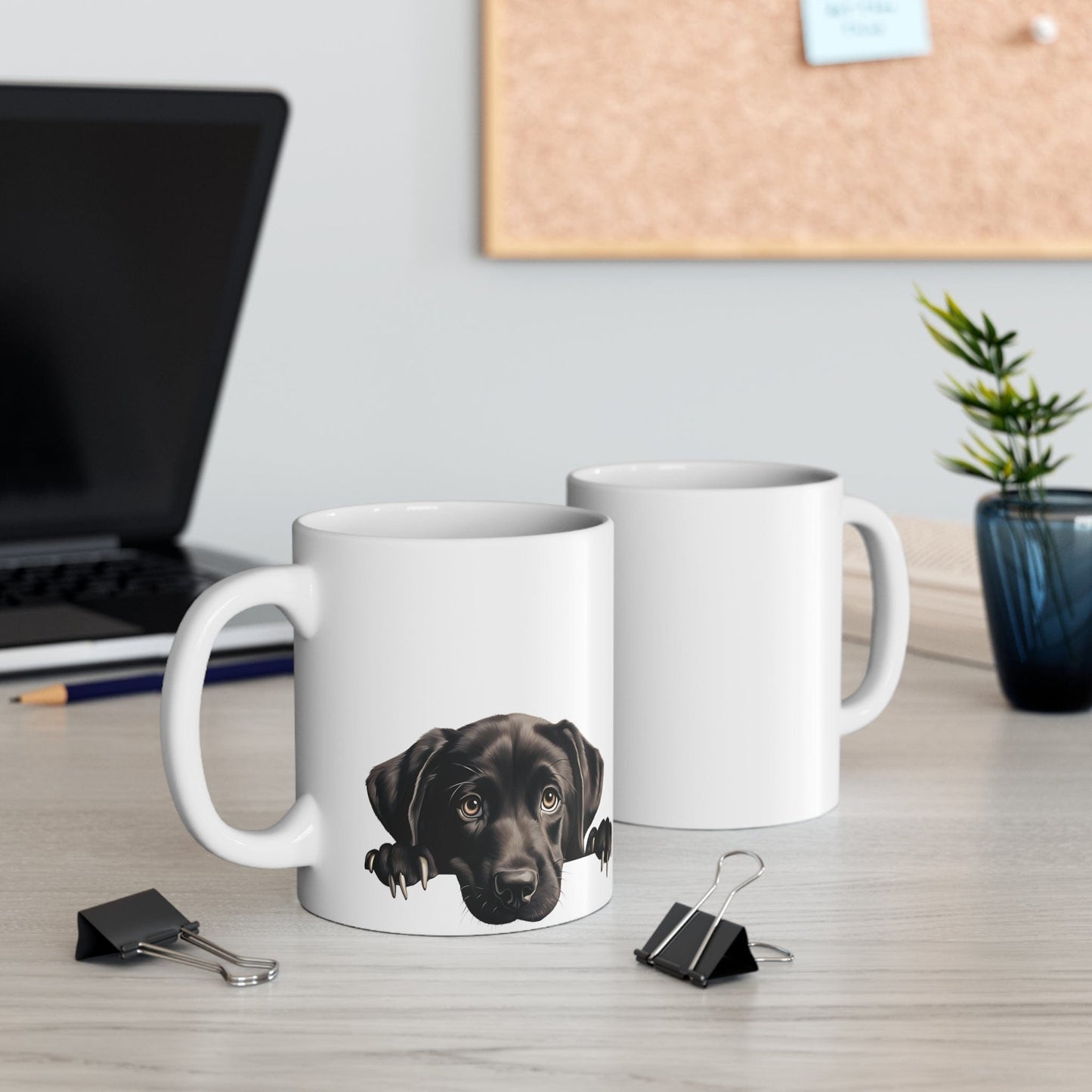 Meet your new favorite mug – a must-have for dog lovers! Kick back with your go-to drink in this awesome dog mug featuring a cute peeking Labrador Retriever. Crafted from sturdy ceramic, it’s not just a mug; it’s like a daily dose of dog-loving joy. Perfect for surprising the dog lover in your life, this mug combines usefulness with the charm of man’s best friend, turning every sip into a delight.