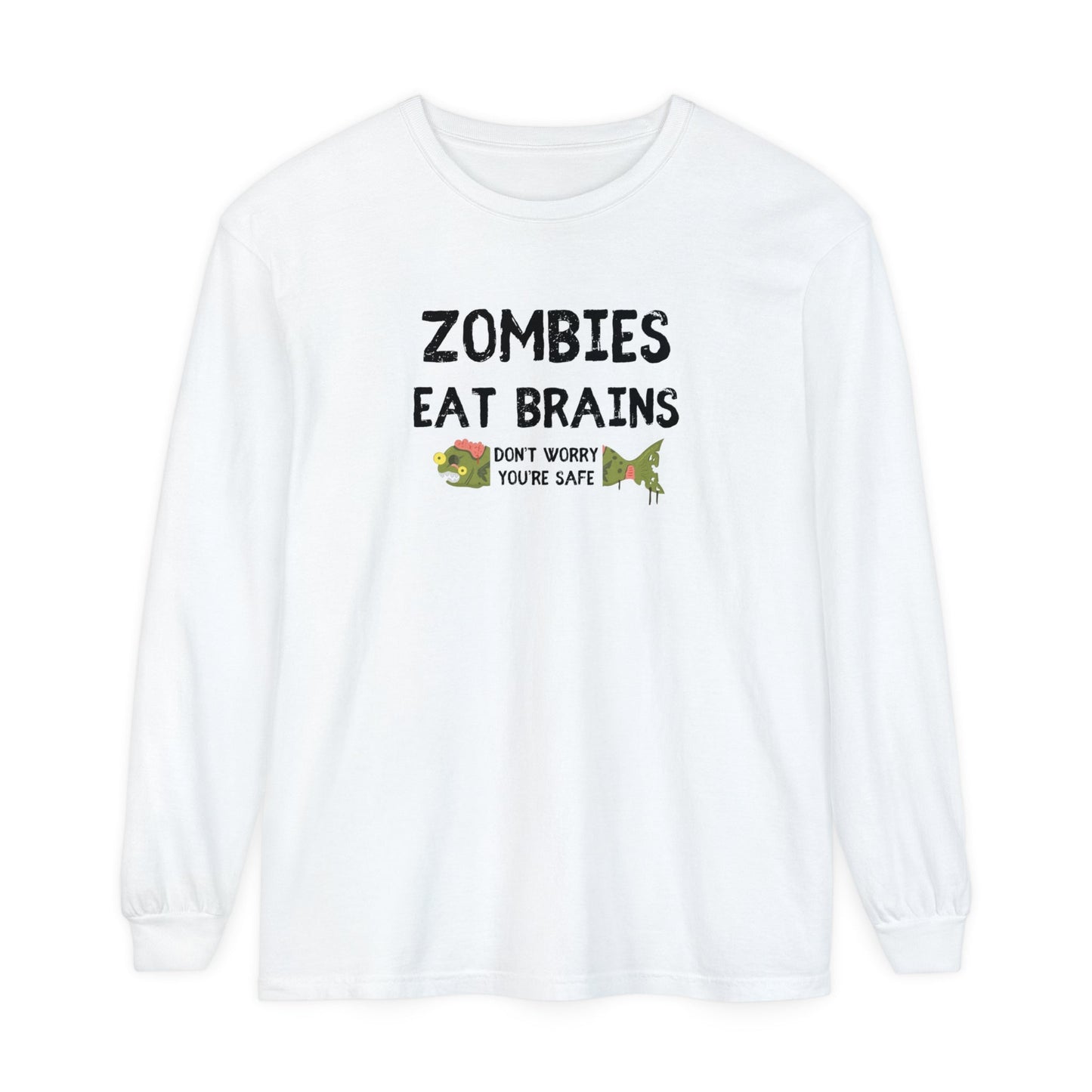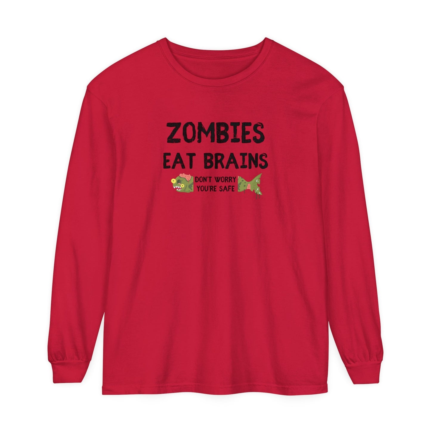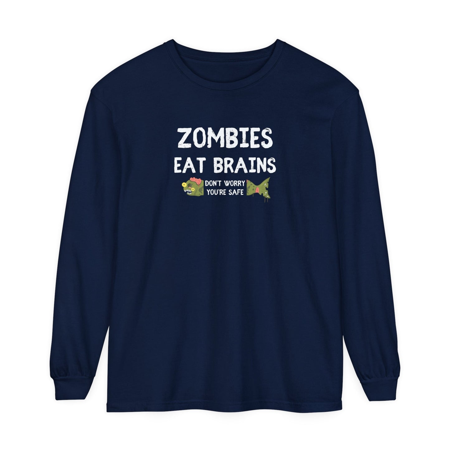 ZOMBIES EAT BRAINS Fish Unisex Long Sleeve Halloween Tee
