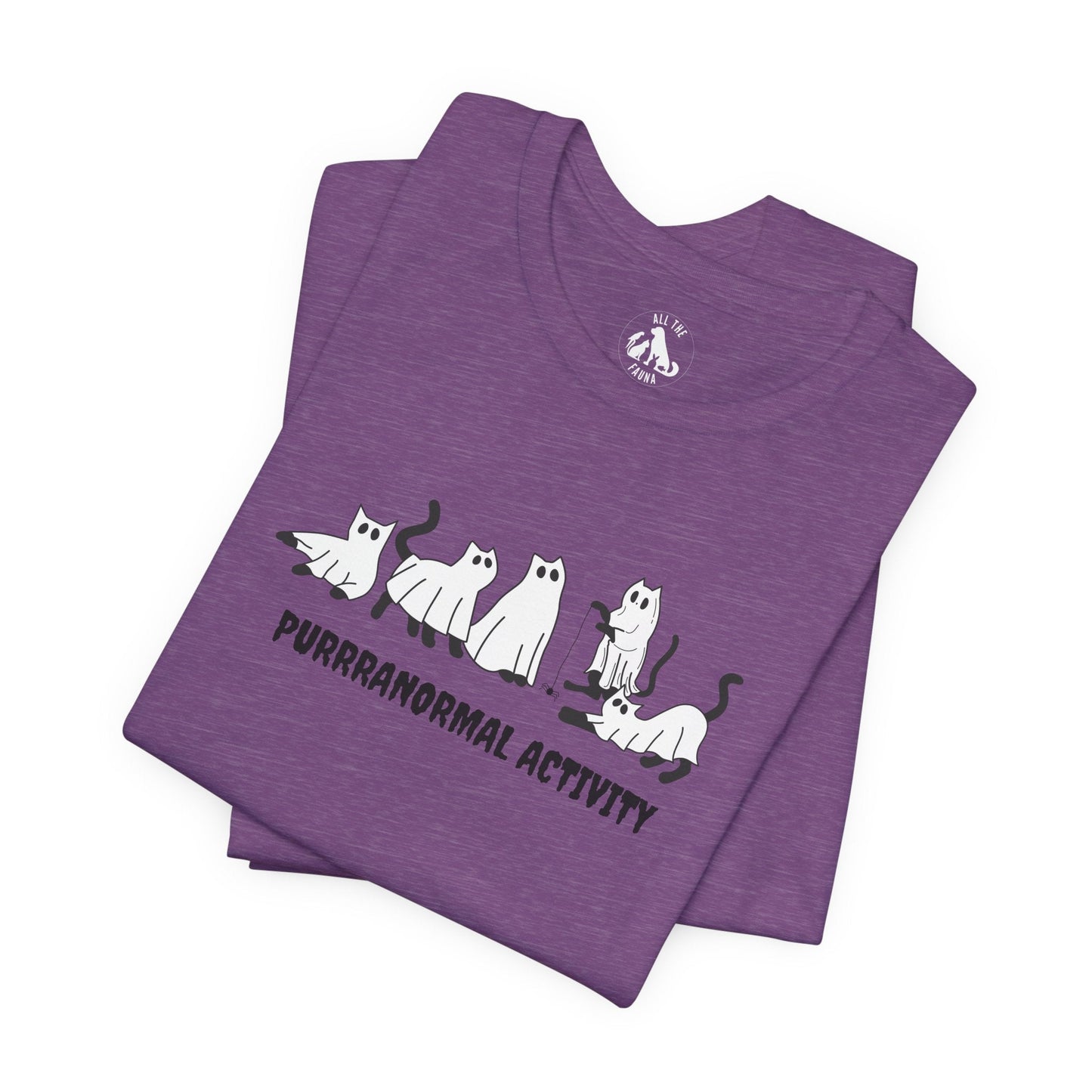 Unleash the spooky with our Purrranormal Activity Unisex Tee! Featuring wicked ghostly cats on the prowl, this tee is the perfect way to show off your love for all things eerie and feline. Perfect for Halloween or anytime you want to add some paranormal purrfection to your look.