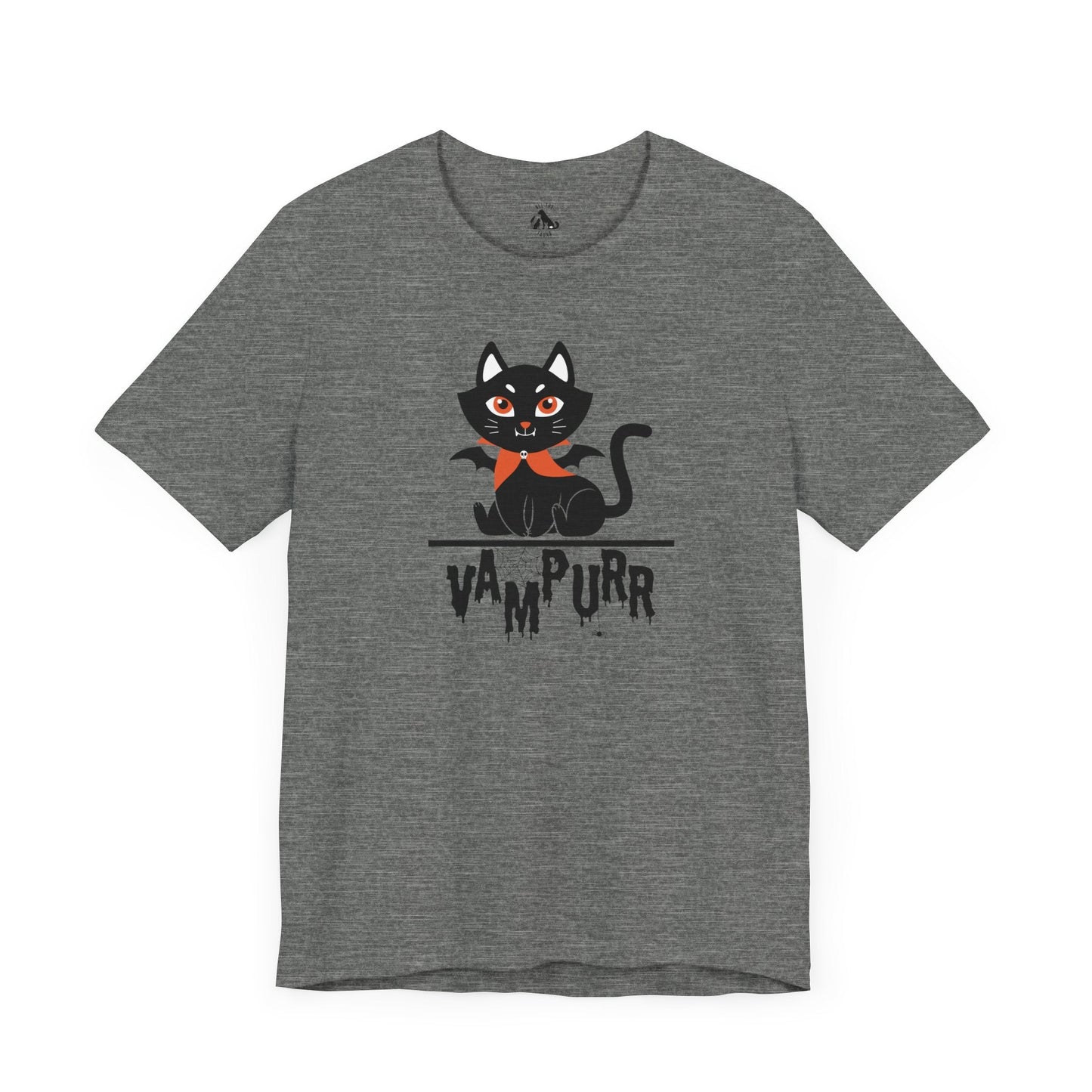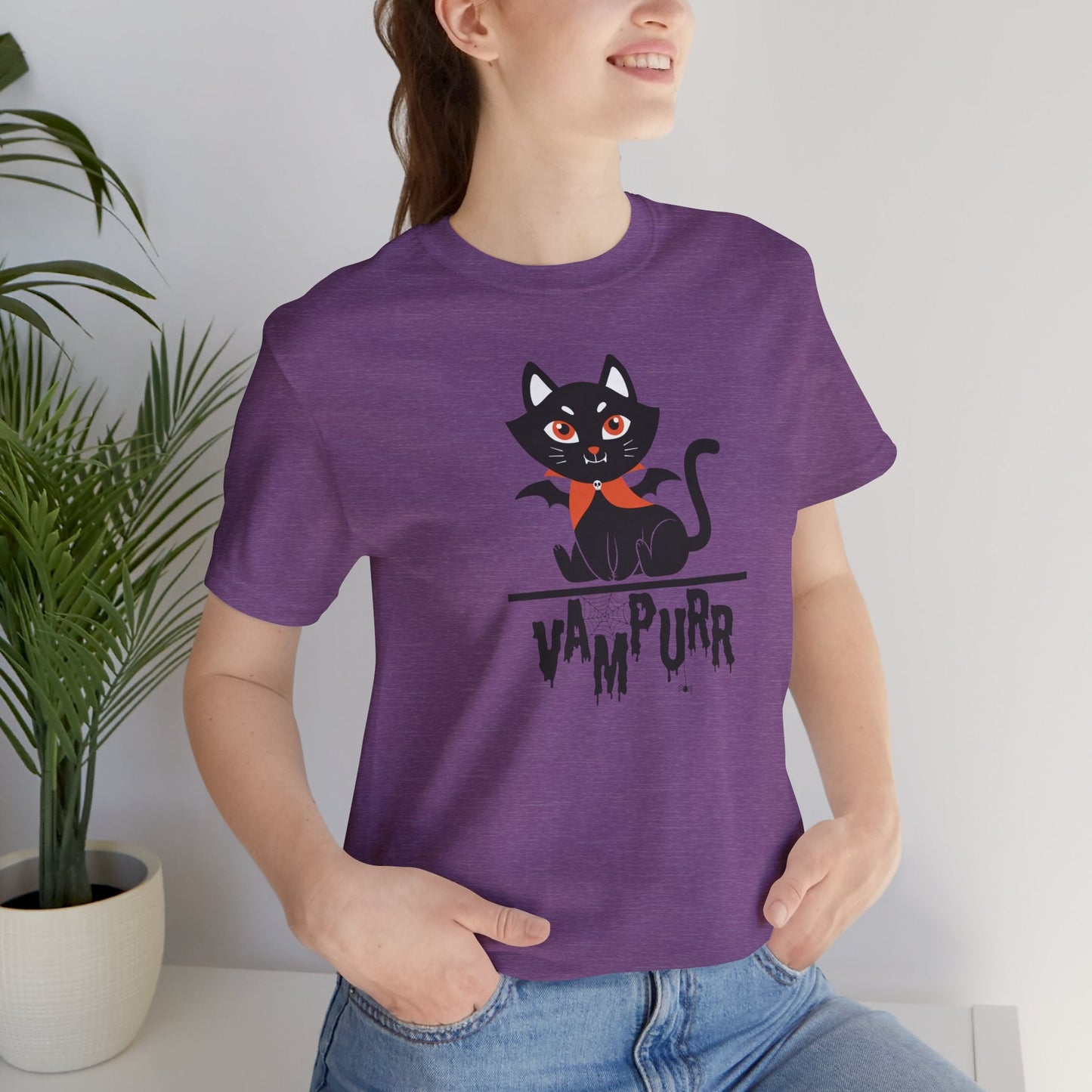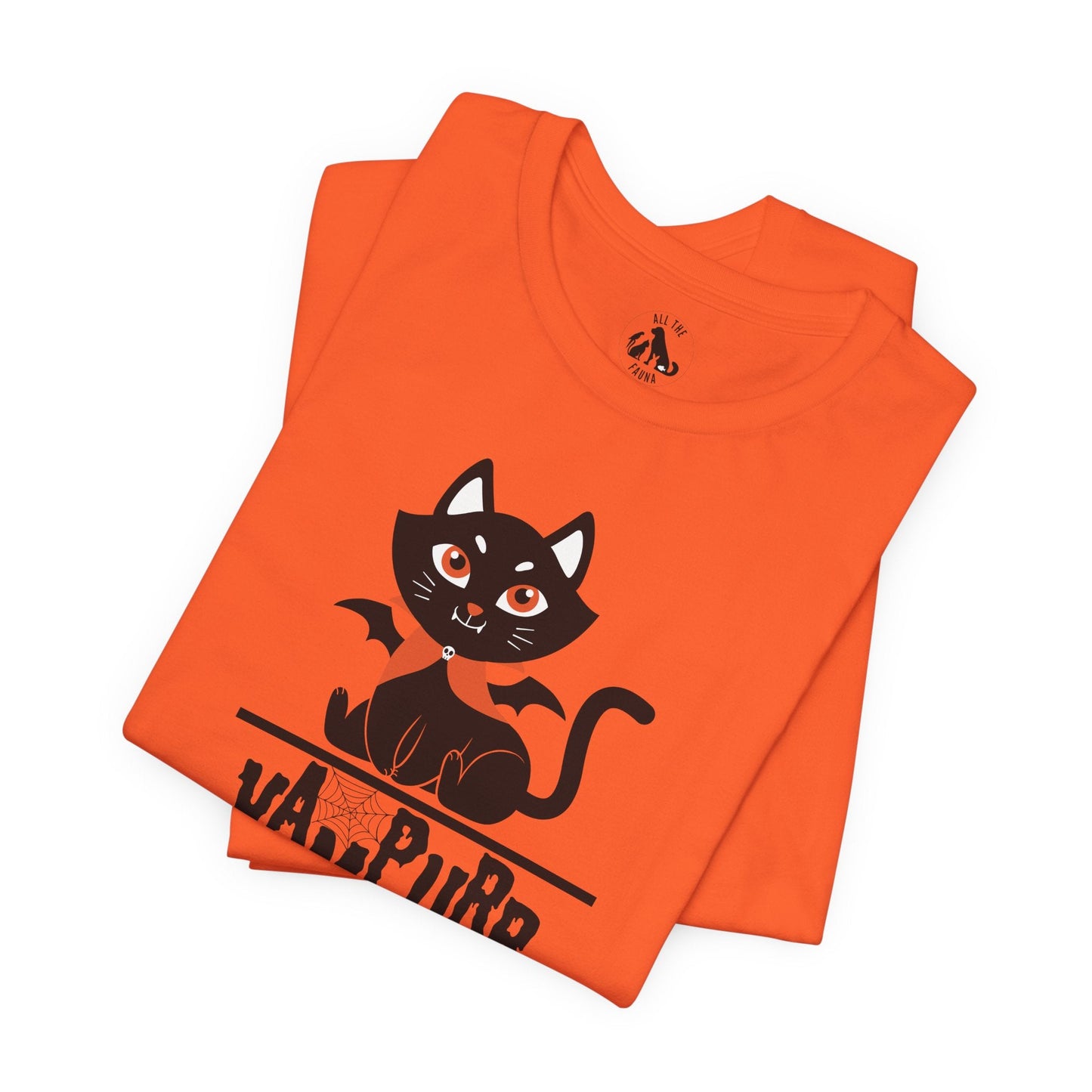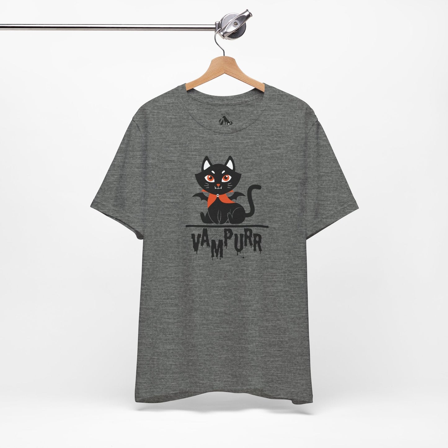 Get into the Halloween spirit with the VAMPURR Tee! Featuring a spooky yet playful vampire cat graphic, this shirt is the perfect blend of eerie and cute. Ideal for Halloween parties, trick-or-treating, or just showing off your love for cats with a dark twist.