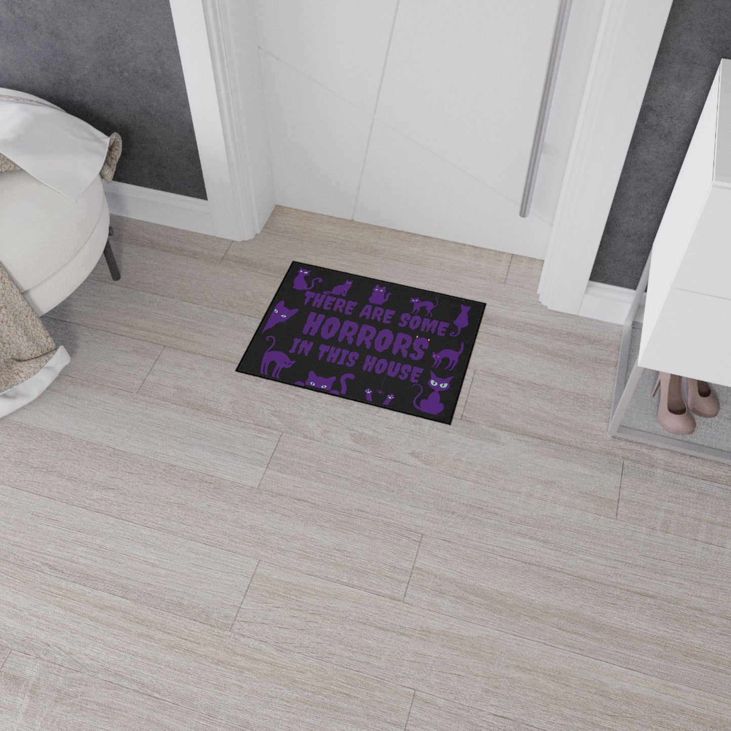 Step into the fun side of spooky with our "There Are Some Horrors in This House" floor mat! This playful mat is the perfect blend of humor and Halloween spirit, welcoming guests with a lighthearted warning about the "horrors" your furry friends might bring.