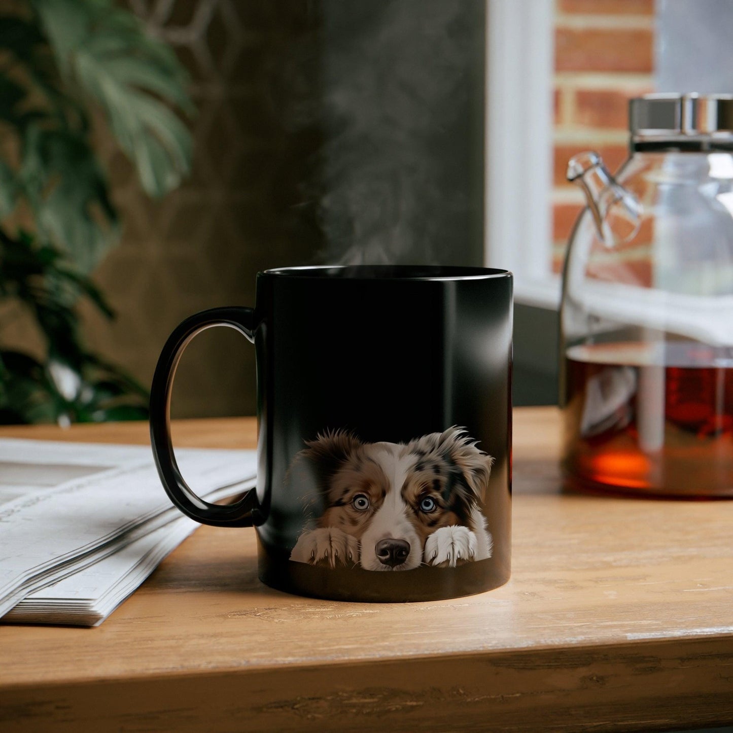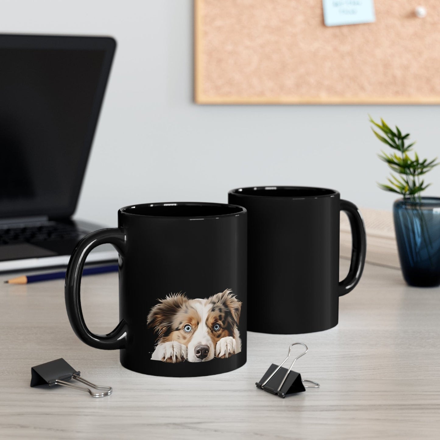 Printify Mugs Peeking Australian Shepherd Puppy Black Ceramic Dog Mug 11 oz