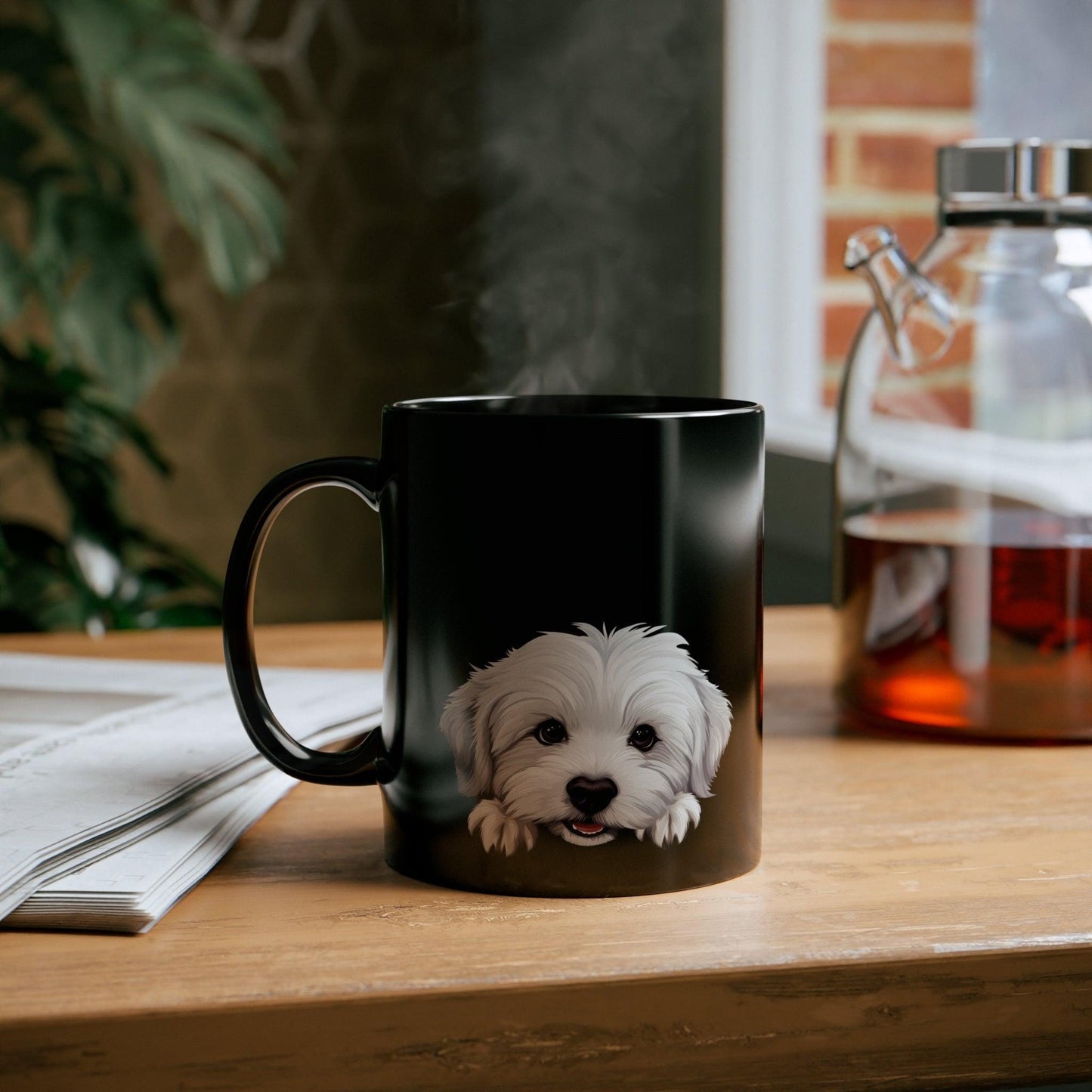 Printify Mugs Peeking Coton De Tulear Puppy Black Ceramic Dog Mug 11 oz