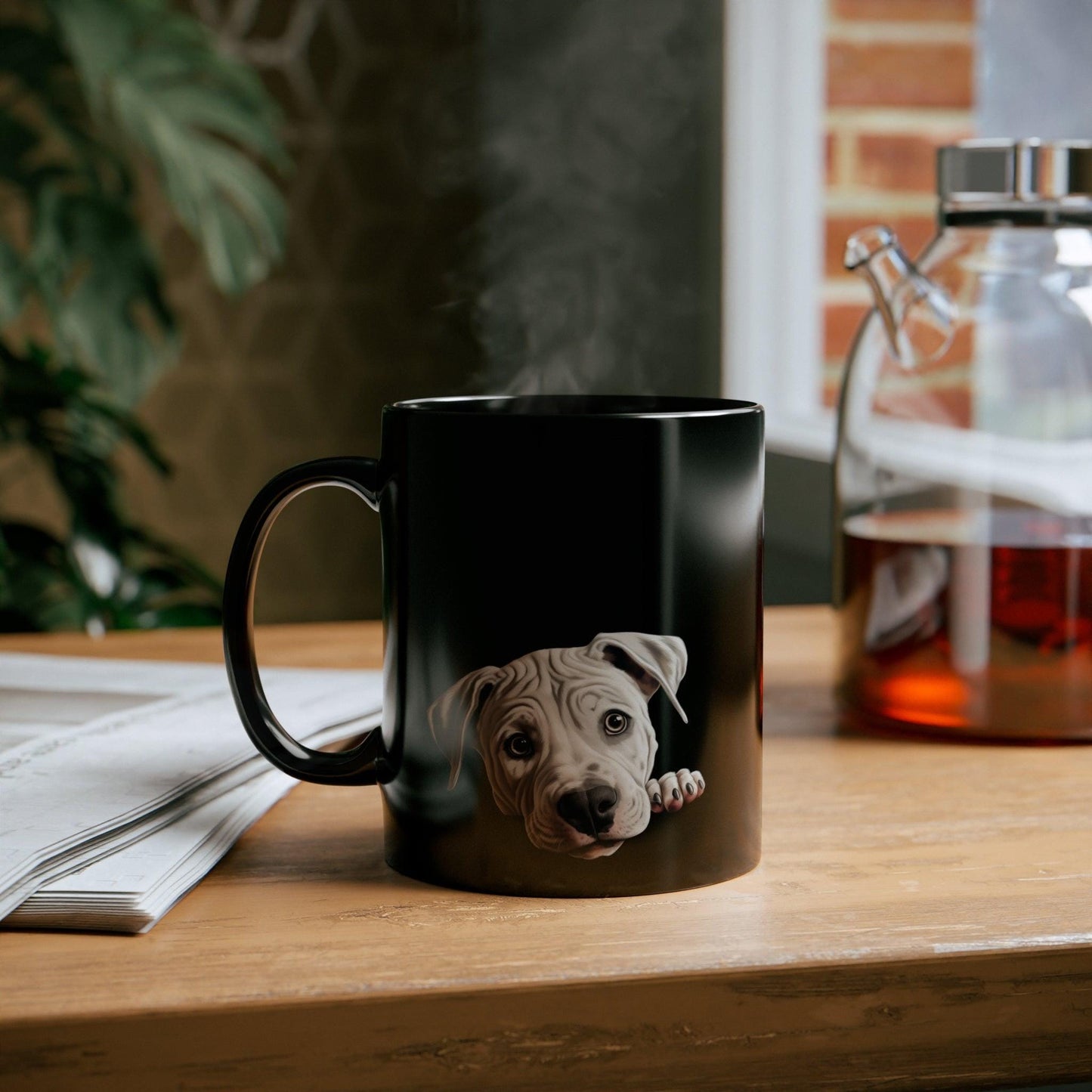 Printify Mugs Peeking Dogo Argentino Puppy Black Ceramic Dog Mug 11 oz