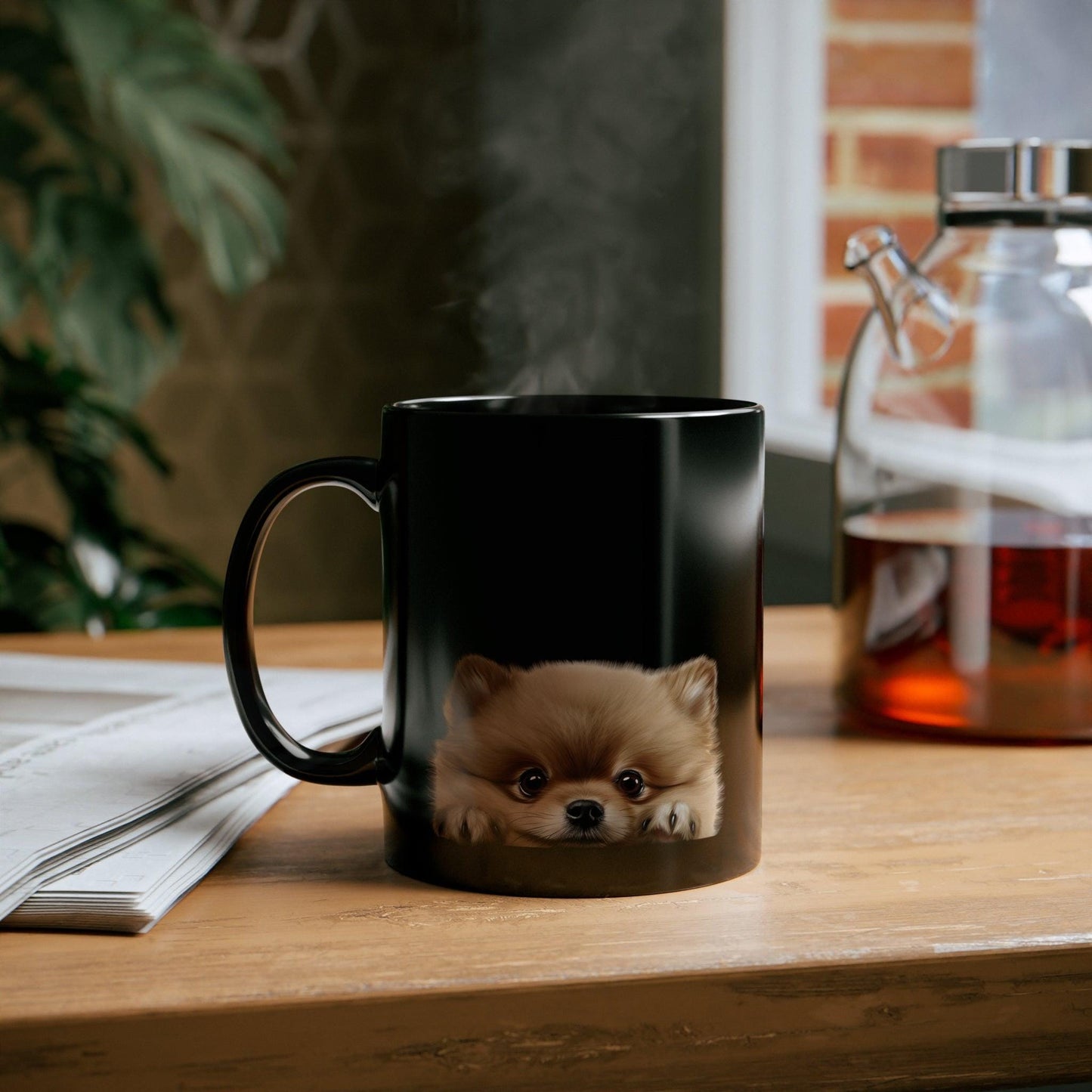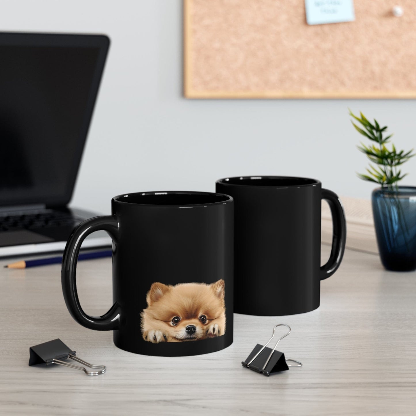 Printify Mugs Peeking Pomeranian Puppy Black Ceramic Dog Mug 11 oz