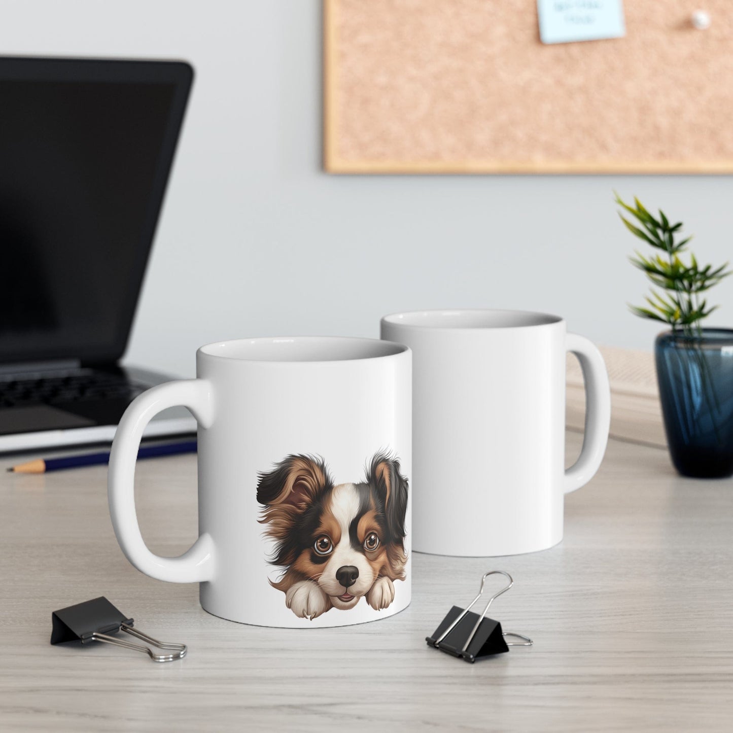 Printify Mugs Peeking Papillon Puppy White Ceramic Dog Mug 11 oz