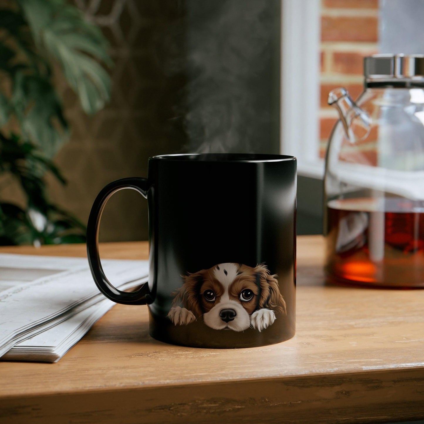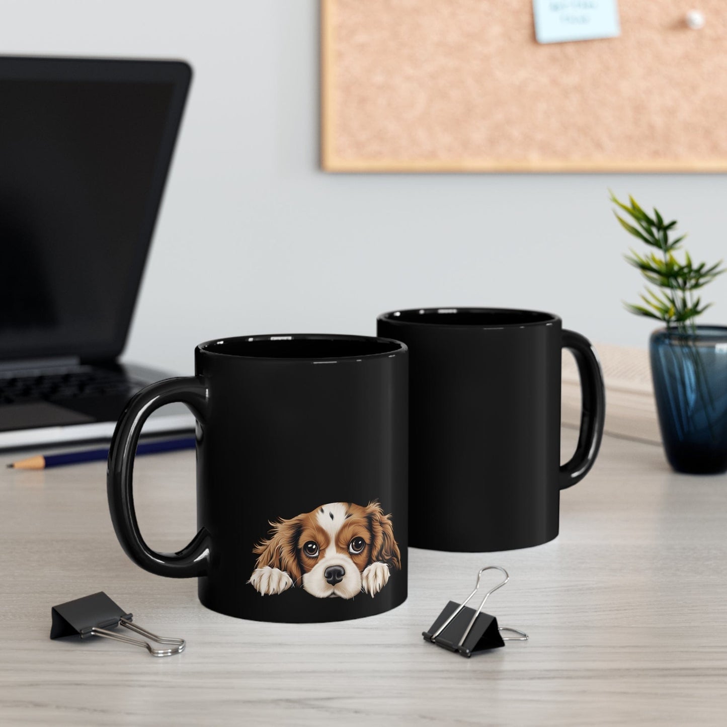 Printify Mugs Peeking King Cavalier Charles Spaniel Puppy Black Ceramic Dog Mug 11 oz