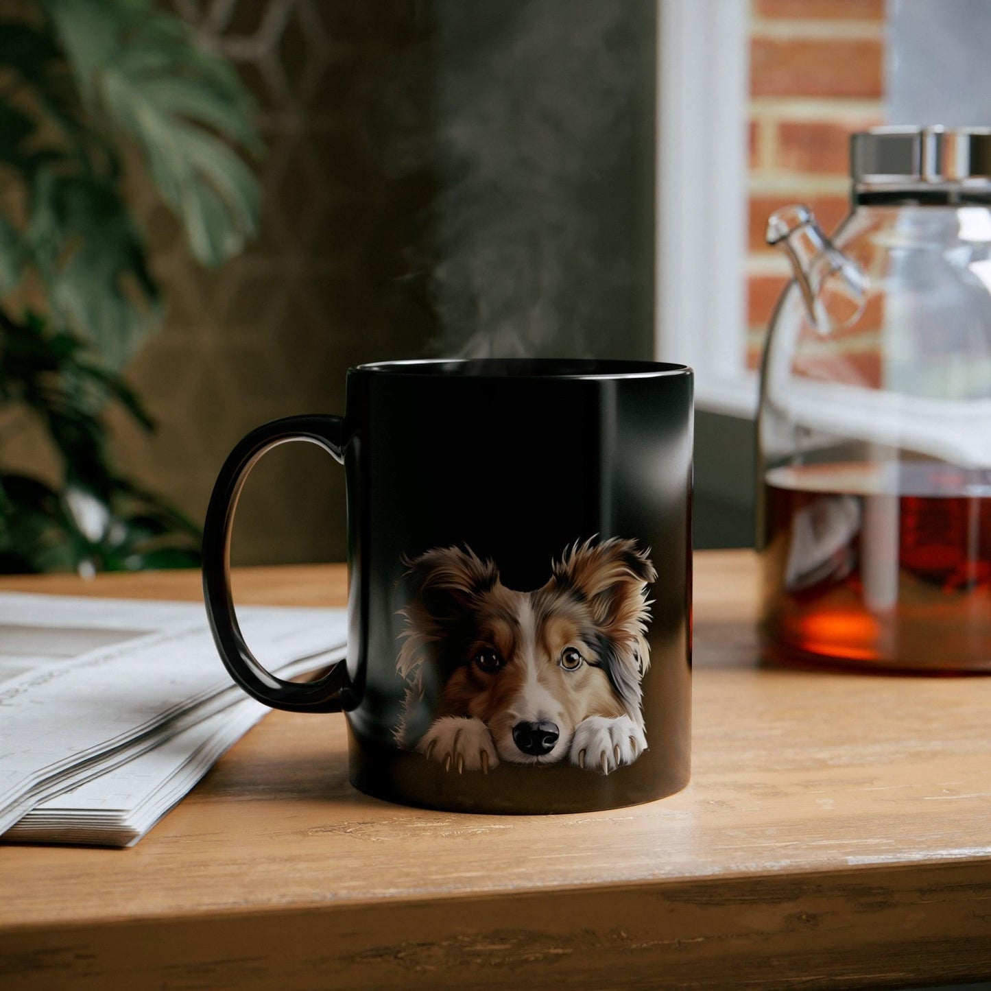 Printify Mugs Peeking Shetland Sheepdog Puppy Black Ceramic Dog Mug 11 oz