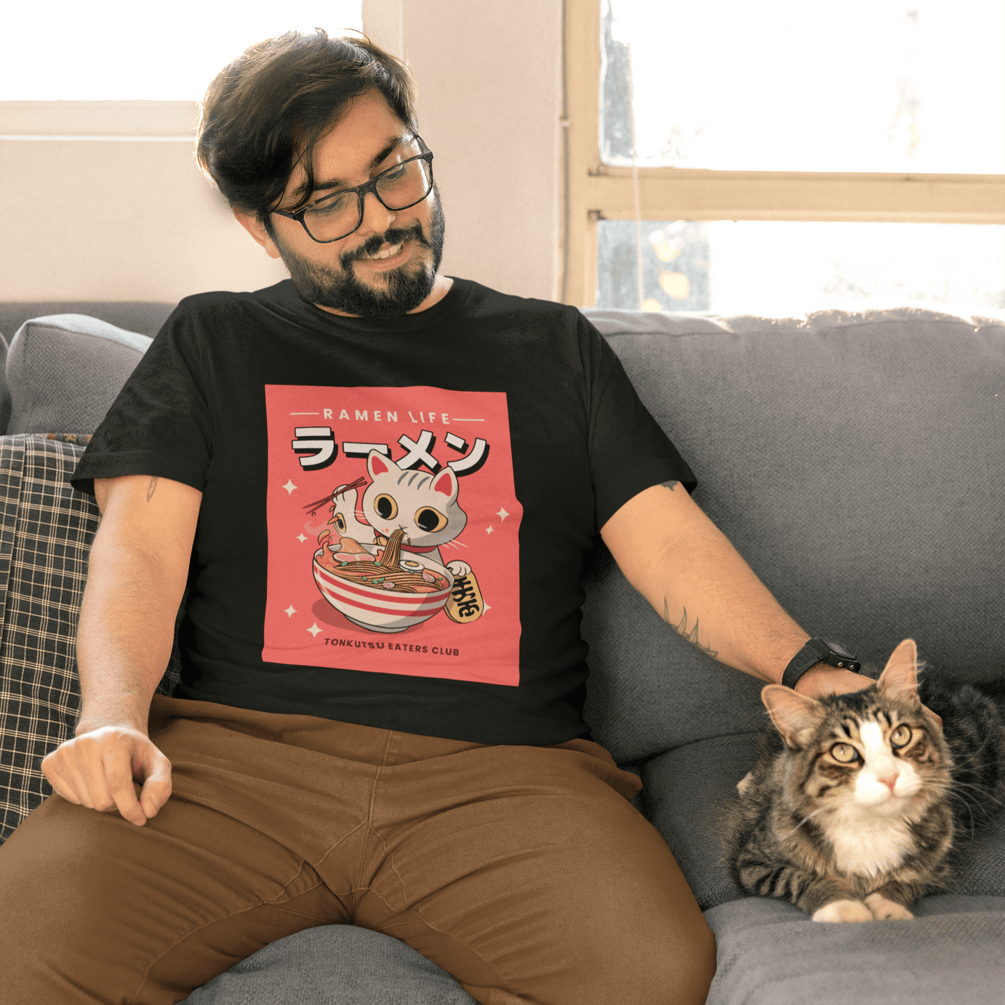 Printify T-Shirts Anime Cat Ramen Life Unisex Tee