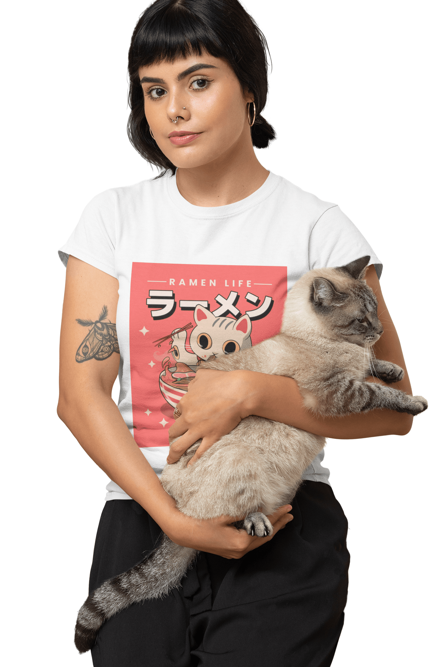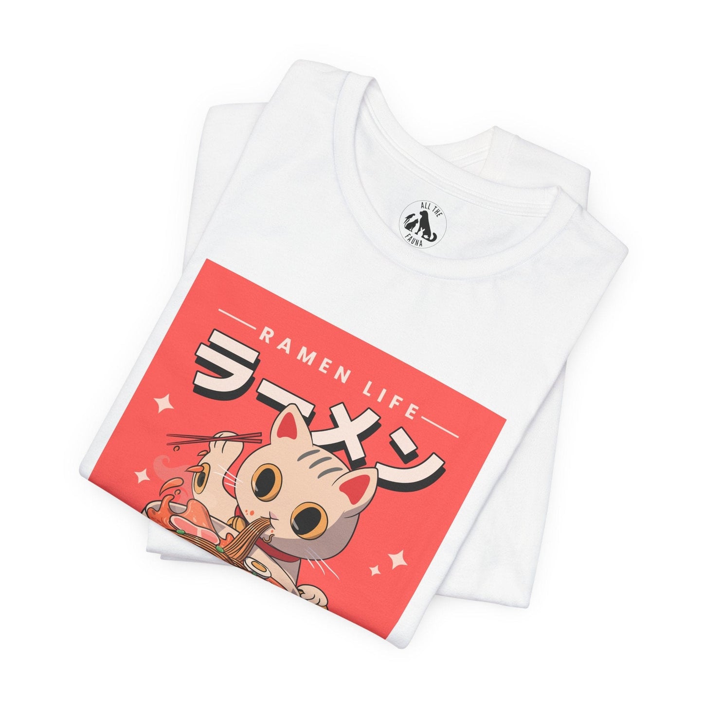 Printify T-Shirts White / XS Anime Cat Ramen Life Unisex Tee