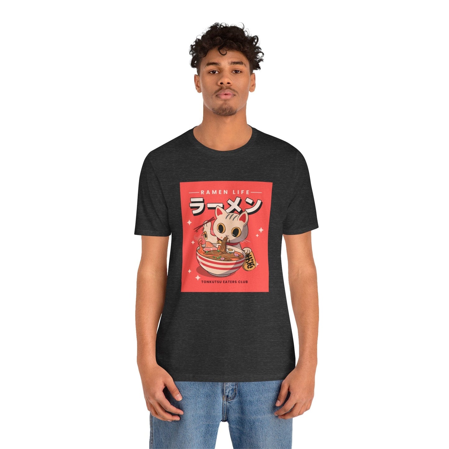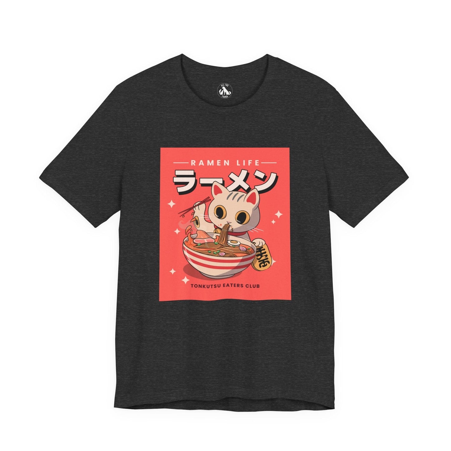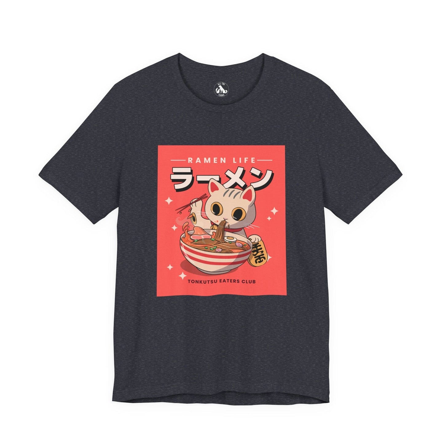 Printify T-Shirts Dark Grey Heather / XS Anime Cat Ramen Life Unisex Tee