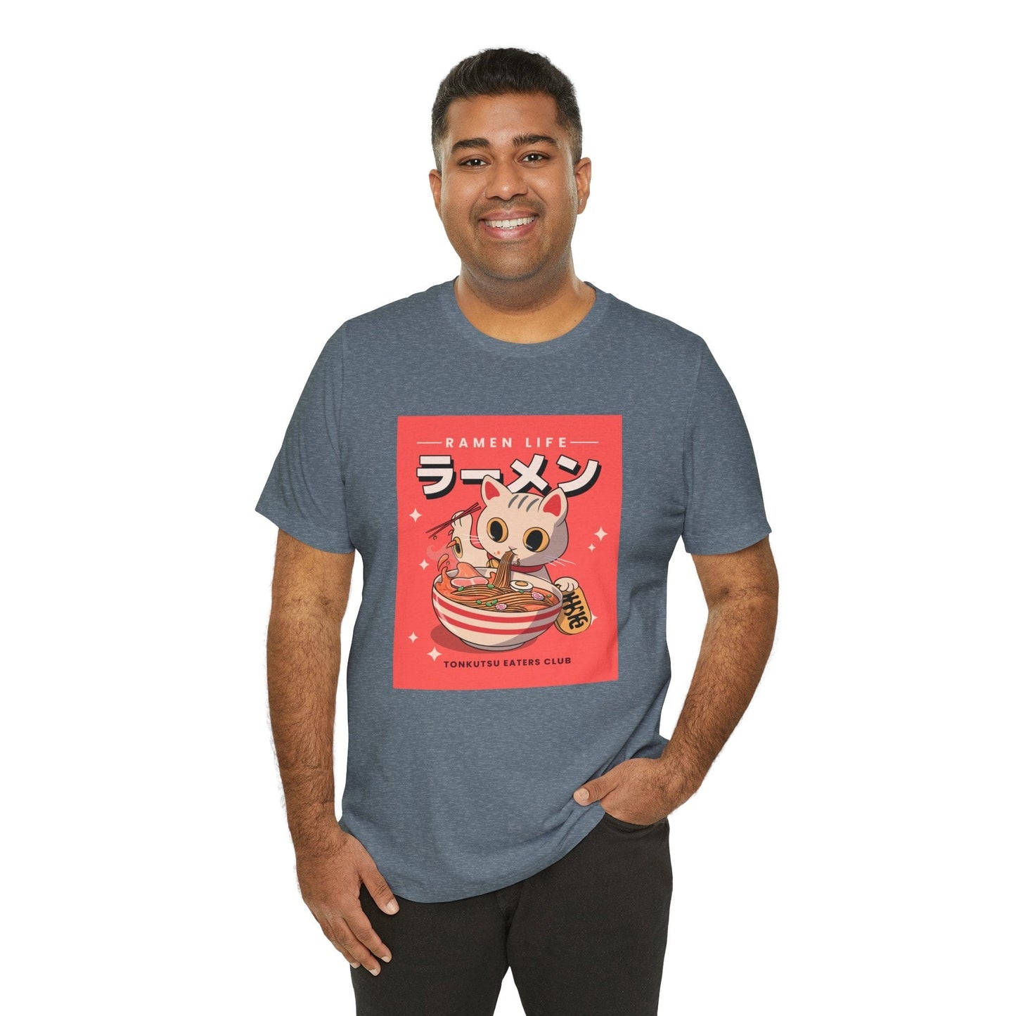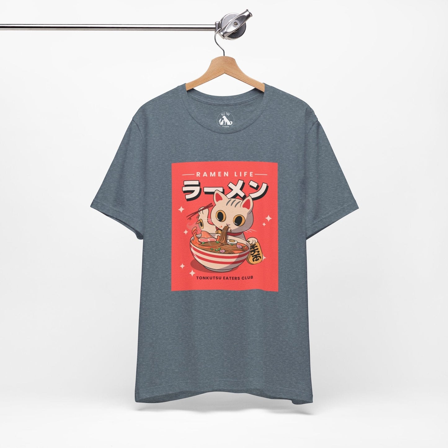 Printify T-Shirts Heather Slate / XS Anime Cat Ramen Life Unisex Tee