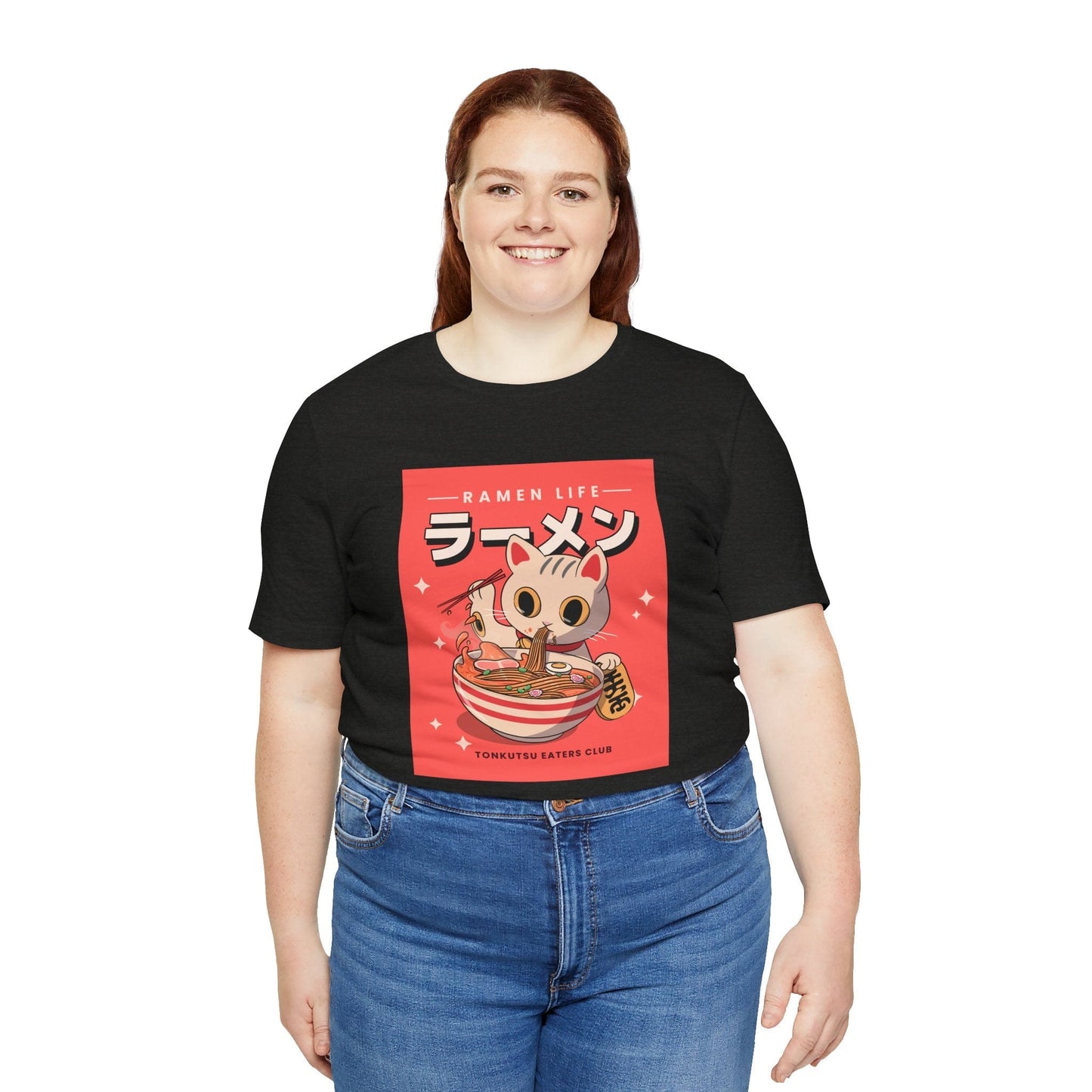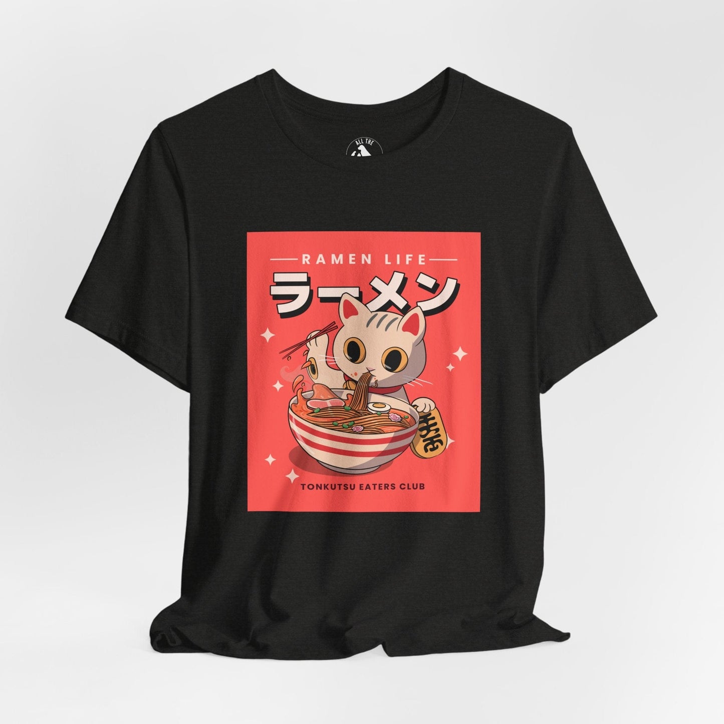 Printify T-Shirts Black Heather / XS Anime Cat Ramen Life Unisex Tee